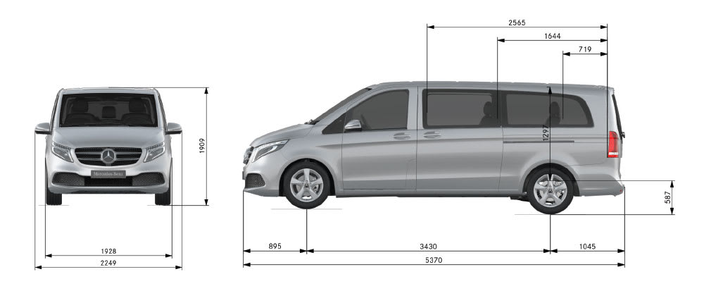 דגם 1+6 AVANTGARDE 300V Class-V מרחק סרנים 3,430 שלוחה קדמית 895 שלוחה אחורית 1,045 אורך כללי 5,370 רוחב כללי 1,928 גובה כללי 1,957 גובה דלת הזזה 1,220 רוחב דלת הזזה 837