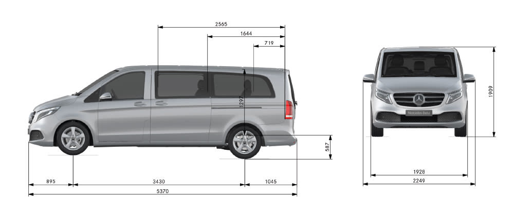 דגם מרצדס V300 AVANTGARDE 1+6/7 מרצדס V250 AVANTGARDE 1+6/7 מרחק סרנים 3,430 3,430 שלוחה קדמית 895 895 שלוחה אחורית 1,045 1,045 אורך כללי 5,370 5,370 רוחב כללי 1,928 1,928 גובה כללי 1,909 1,909 גובה פנימי 1,297 1,297 גובה דלת הזזה 1,220 1,220 רוחב דלת הזזה 837 837